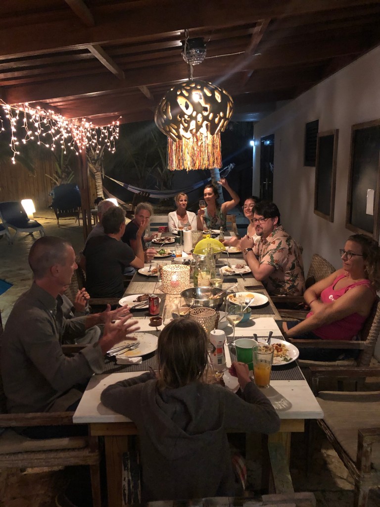 Meeting new friends and having to say goodbye: As I’m in bed with my delivered morning coffee (which has now become a delightful habit thanks to Erik), I’m contemplating what to update you on next. Even though our pace has slowed down considerably, the days are somehow filled up with new and exciting experiences. Since we are living at a guest house, we are constantly getting to know new people. Some of them we get to know really well, and its sad to say our goodbyes, like we had to this past Friday with Roland from Germany. He was with Erik on the surf clinic, and we had daily delicious guesthouse breakfasts together and he even came with us to the Donkey sanctuary. The same day we also said farewell to a family from Holland that we got to know through Noah playing with their youngest son. We were invited to their farewell gathering on Te Amo beach with all their Dutch friends living on the island, and the children enjoyed swimming in the waves and playing with all the other kids until sunset. But even though we have to say goodbyes, new friends and contacts around the world are made for life.