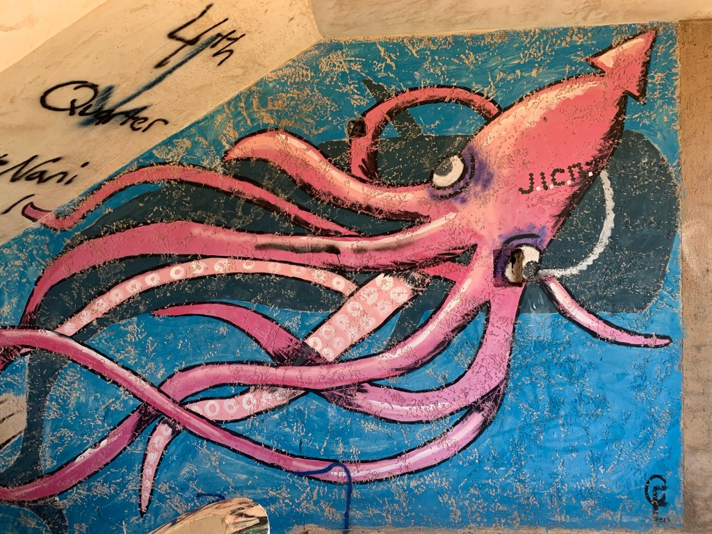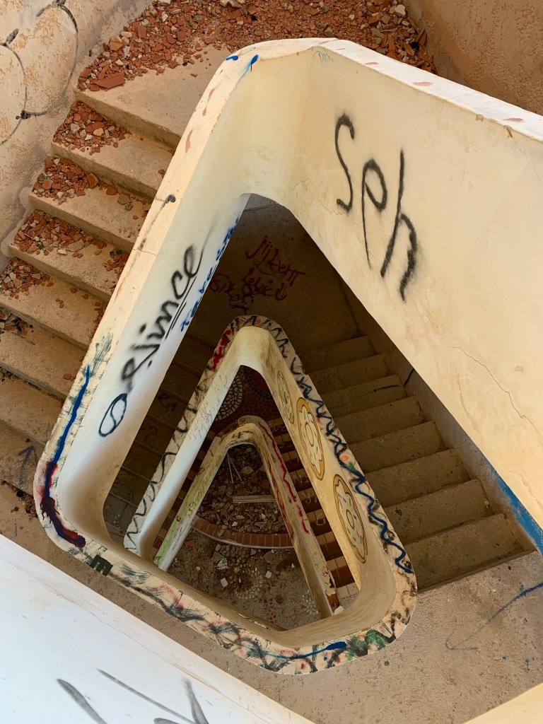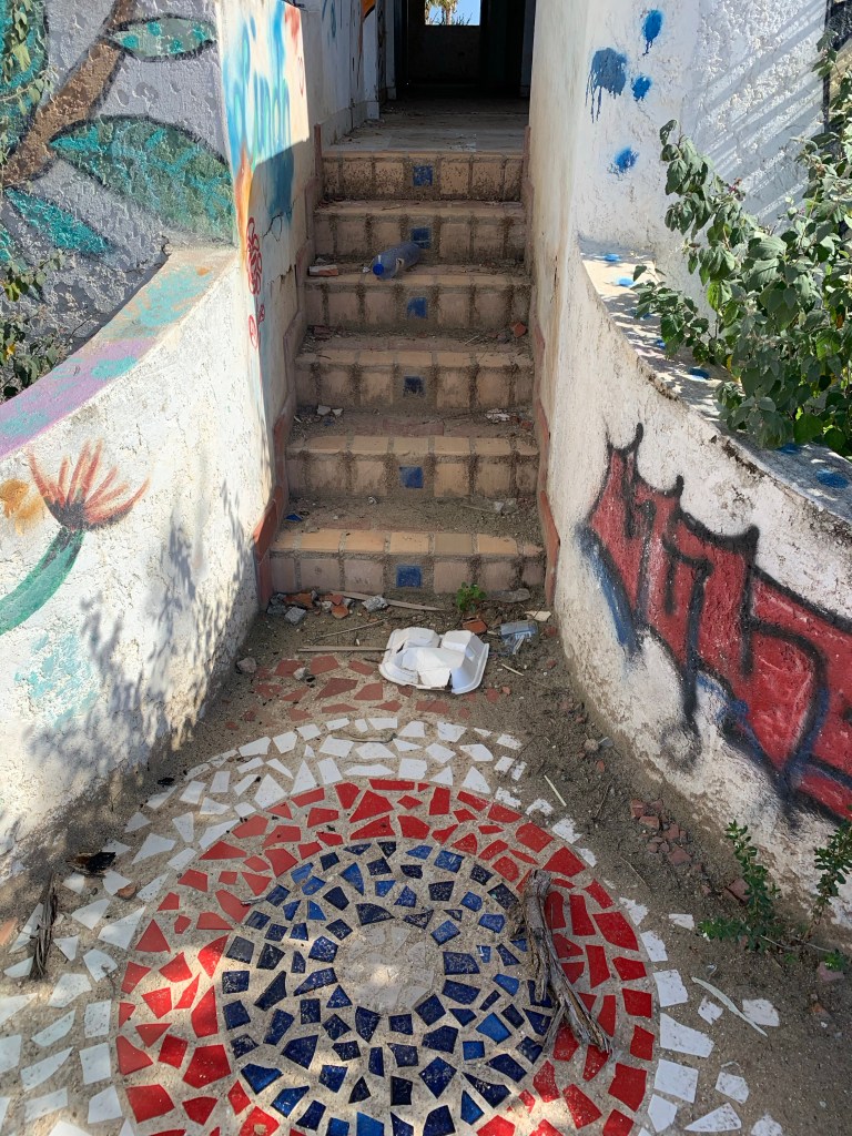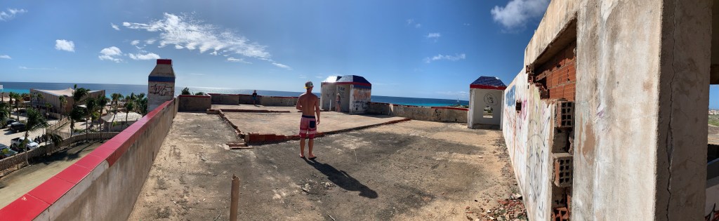 Ocean Oasis is a beautiful hip beach club/restaurant/hotel located right on the seafront. However, what is most intriguing is that right next to the fashionable beach club is a ghostlike unfinished huge residens with lots of (quite beautiful) graffiti. It now belongs to Ocean Oasis and word has it that they are going to build a hotel there, but years ago this residens was being built for Pablo Escobar! When you visit the beach club you can wander over there and into the residence. Mille, Noah and I found it extremely fascinating, and we walked through the whole place, dark corners and all. We found rooms with an irongate (could it have been Pablos private dungeon for imprisoning his enemies?), bathrooms that had been dismantled missing the sinks, bathtubs and mirrors, beautiful ceramic mosaic patterns of white, blue and red in the entrances and stairways – our imagination ran quite wild! Erik left after a short while but the other three of us could barely pull ourselves out of there…