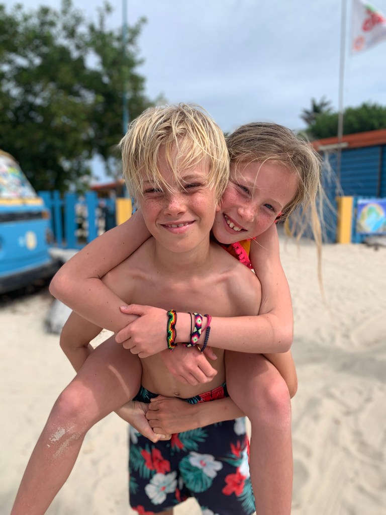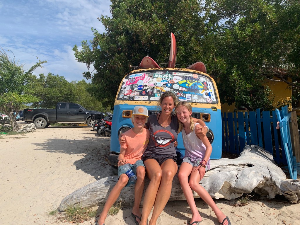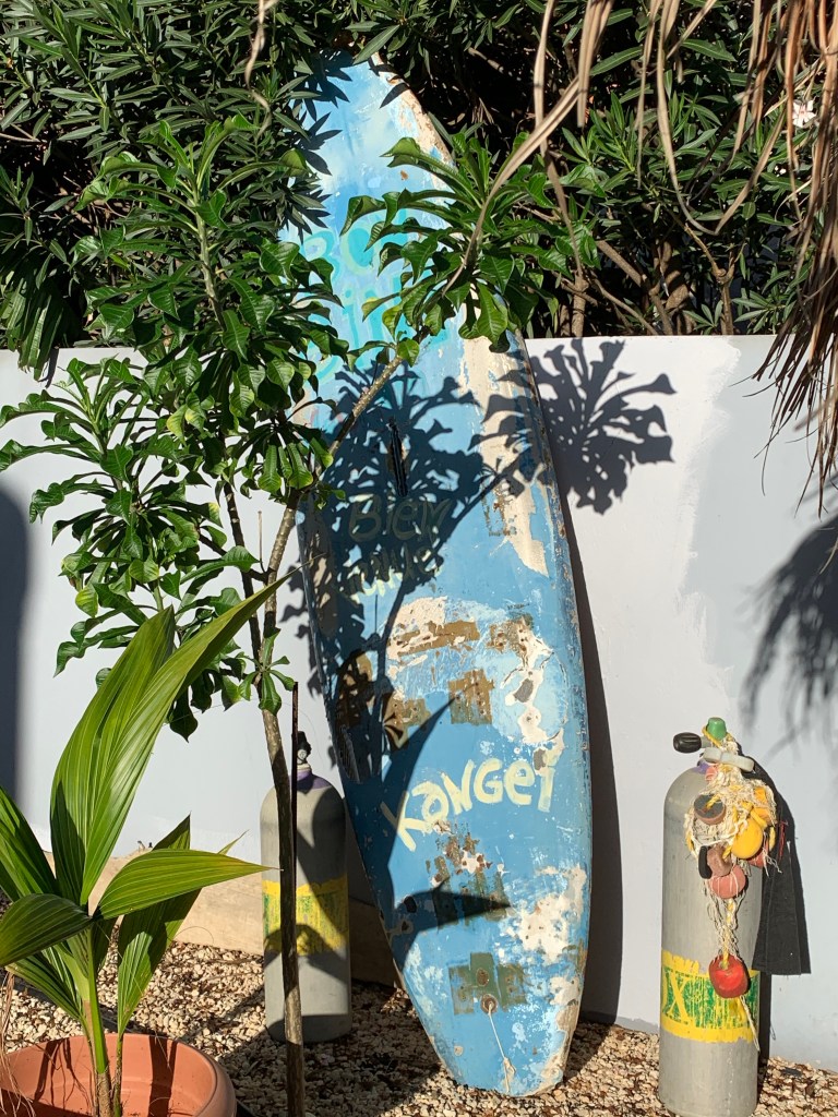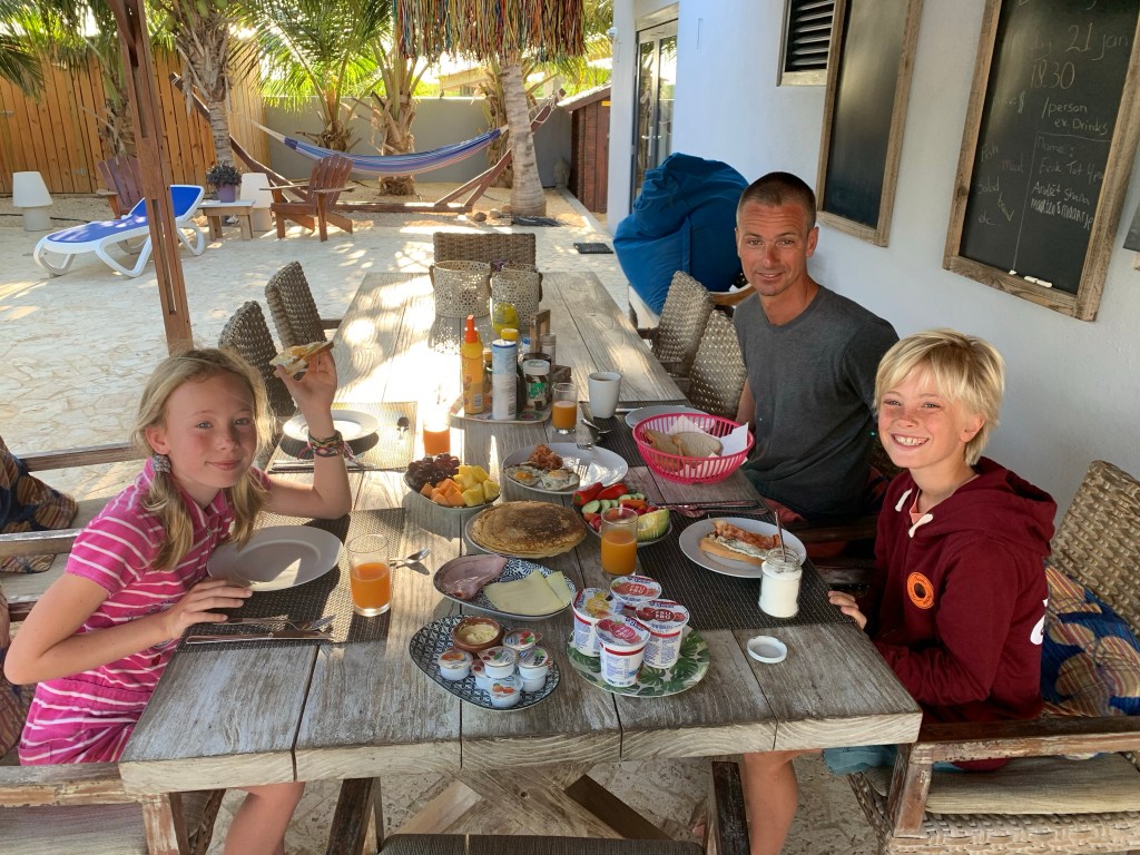“På gjensyn” – Strangely enough there is no good English word for “see you again”, therefore the Norwegian expression will have to do! We will miss surfing, all the sweet people at Oasis guest house, Jibe and so on. The last week has been filled with different delicious home-made barbecues by Kim and Dithlef (Kim and Johns friend that is visiting) and meals out with Kim, John, the other guests living here; Andrej, Shana, Dithlef (all from Holland) and a few others that we did not quite have time to befriend because they just arrived. Yesterday we hung out with and said our goodbyes to our surf instructors D&P and had a nice time with them at Ocean oasis (a beach resort near the Guest house where you can rent sunbeds for the day and swim and snorkle in the sea). Mille and Noah played in the sea with their sweet little girl, who’s become Milles mini friend here in Bonaire, making Milles stay on the surf beach bearable, because she could play with her and have fun even as the rest of the family was surfing.