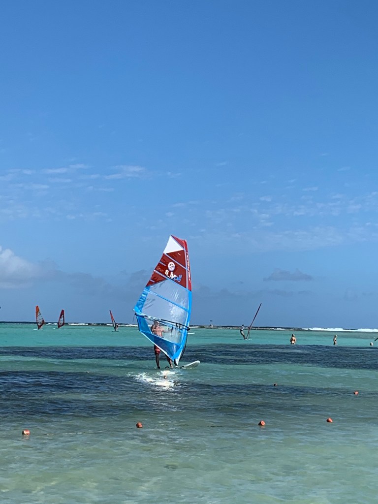 This 3rd and last week has, like the previous 2, flown by so fast. Mille and I had surf lessons with surfpro Danielle and its really given results. Jibing, tacking, harness, planing, smaller board, larger sail – its such an amazing experience, this is going to be really expensive for Erik when we get home! Not only will he have to share his equipment, we ned 2-3 new harnesses, several sails and maybe 1 or 2 boards, hehe! And since we’ve all been practicing on carbon equipment here, well you do the math! But surfing does come at a bodily price – I ve looked like I’ve been beaten ands slashed up for 3 weeks.. You know, the fin is really sharp, so its a really bad idea to get p….. off and then shove hard at the board while you bend your knee up towards it… Just saying… But now wounds and bruises are starting to heal, and Jibe City is in the far distance – we will definitely return to the place! Tom, Patrick and all the other surfer guys help you with all the equipment and advise and the sweetest ladies in the reception are one of a kind! If you have the opportunity to go to Bonaire, and you like surfing; go to Jibe City, I promise you will have the ride of a lifetime!