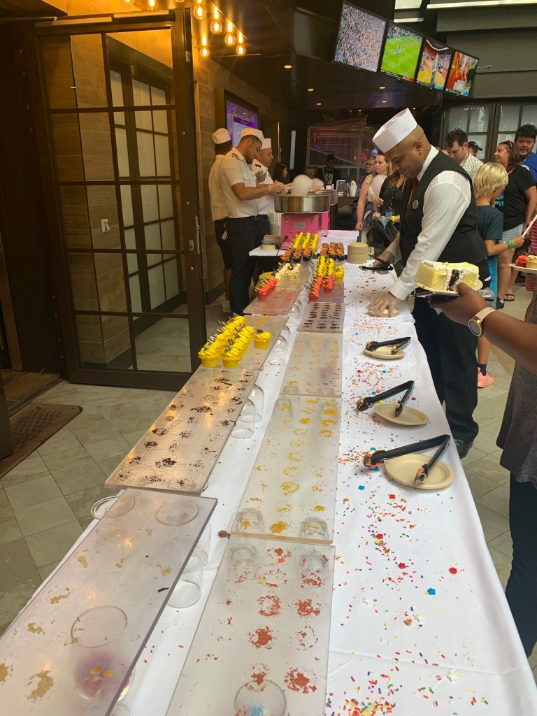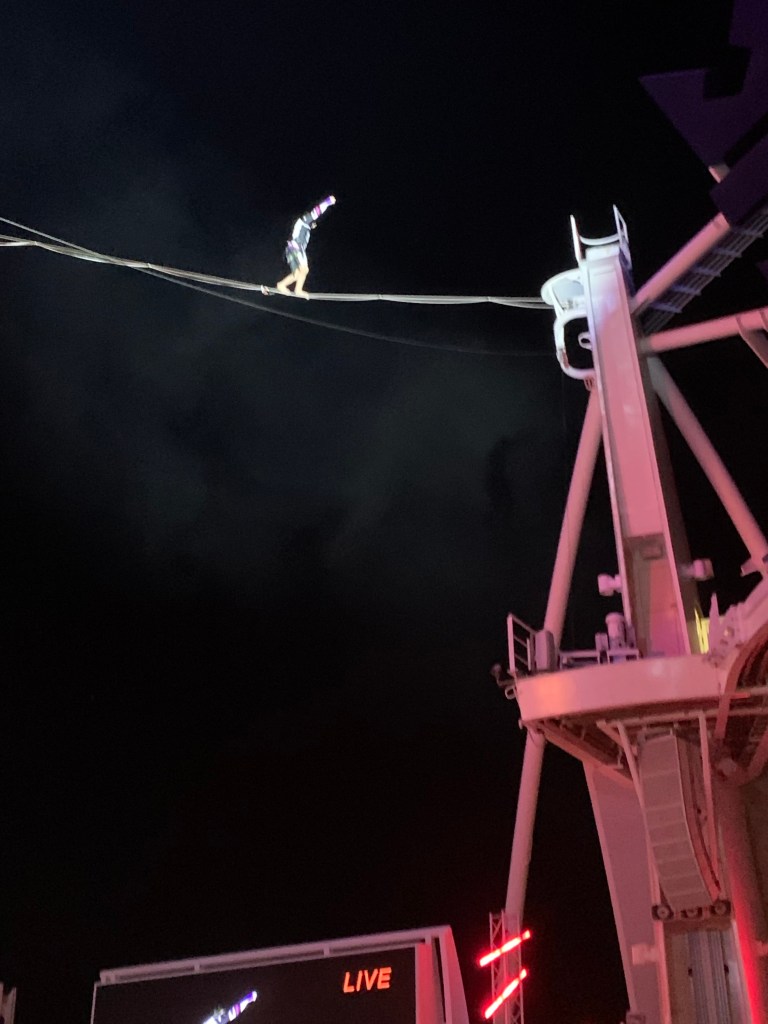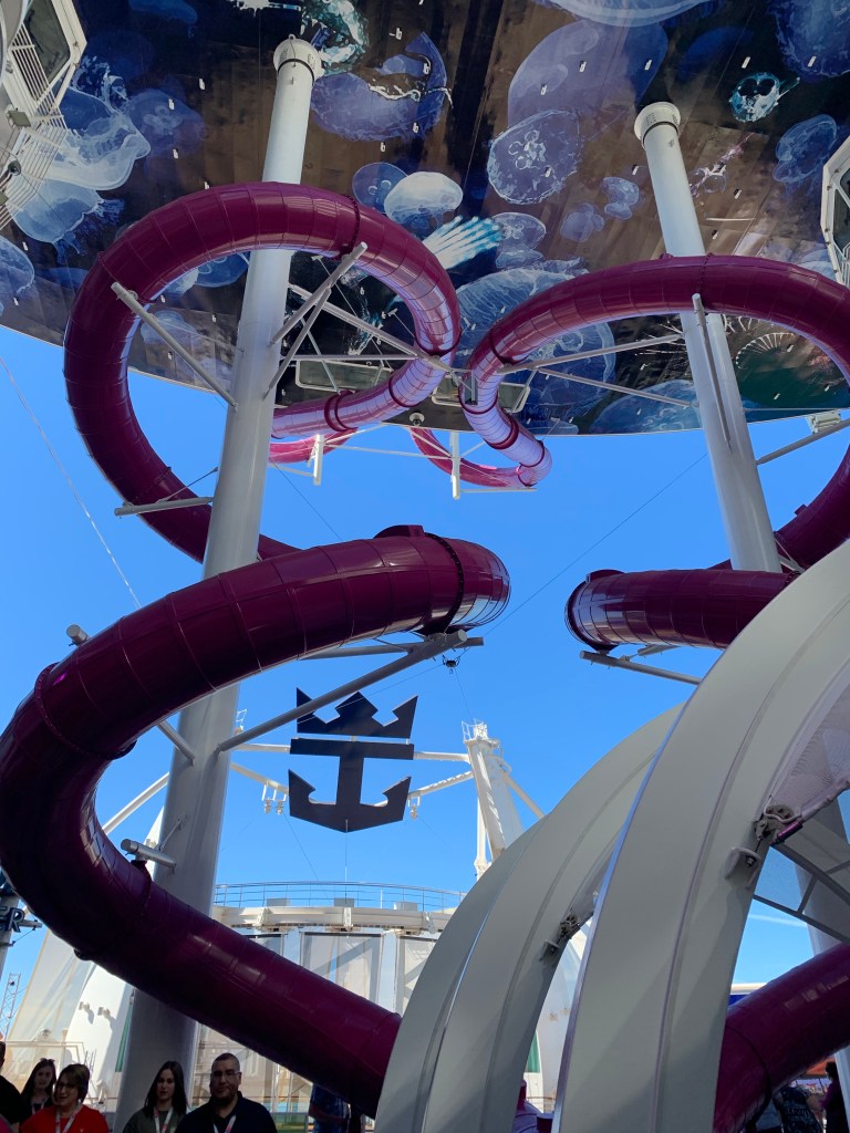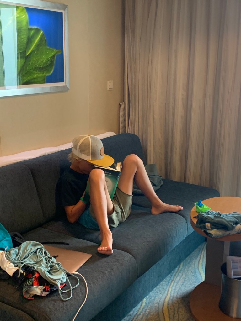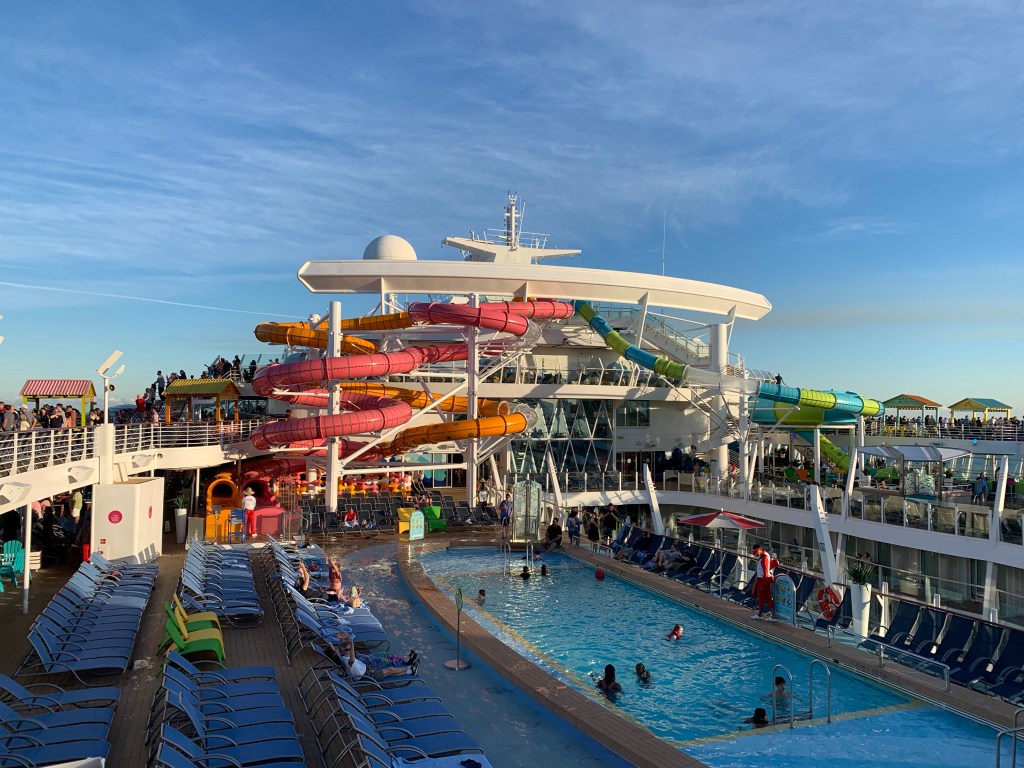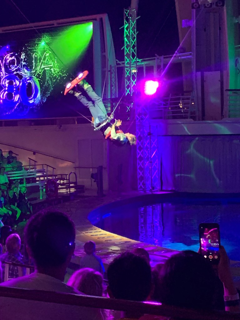 Cruise without bruise – Cruising isn’t for beginners, you actually need a coach and hands on training in advance not to faceplant in the cruise boat jungle of diamonds and taxfree jewelry deals, raffles of all kinds, pool karaoke/disco in daytime, crowning the worlds sexiest man (on the ship…), spa and hair appointments, attending the family party at the board walk with carousels, rides of slides and ziplines, basketballcourt, minigolf, boogieboarding, surfboarding, casino/blackjack tournaments, outdoor cinemas, outdoor entertainment, Cats-the musical in the ships royal theatre or simply a stroll through the ships own Central Park……. and not to forget to mention getting the right drink packets the first day!
