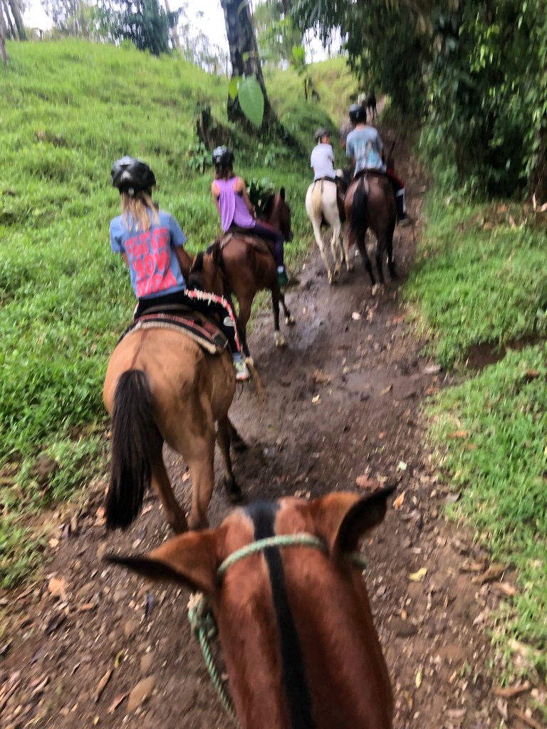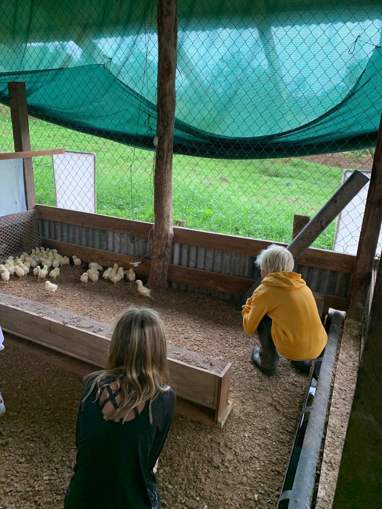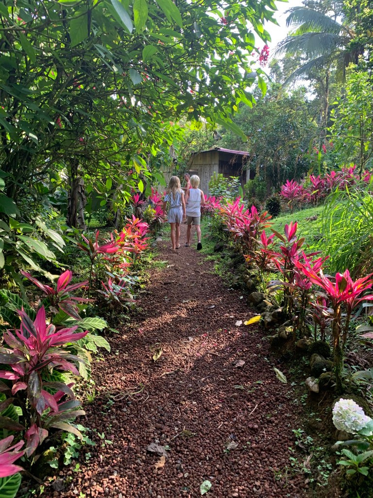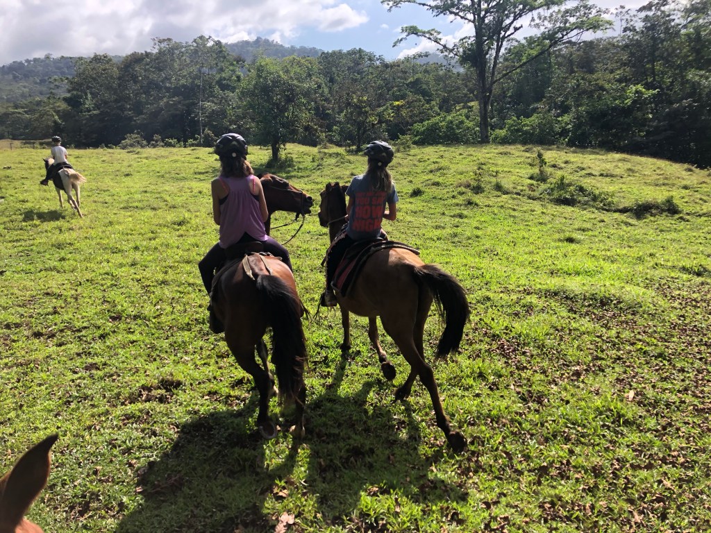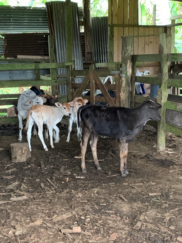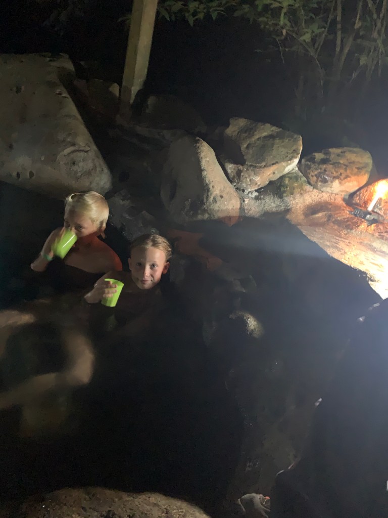 Earlybirds walking up the pastures at 7 in the morning with home made hot chocolate to milk the cows, greet&cuddle the chickens and say hi to the pigs, followed by home made breakfast, best ever coffee served in metal cups and home made, wood fired stone oven baked bread. A time to teach the children where our food really comes from. Meat, eggs and milk here comes from the animals living here. The fruit, veggie, chocolate and coffee is from local farmers. Its a fact that a fair amount of Costa Ricans are self preserved when it comes to a lot of food like meat, fruit and vegetables. Many children nowadays grow up thinking meat arrives in the world vacuum packed… We met the sweetest boy, Ryder of about 12-13 y.o. who was at the lodge with his parents. The second morning he came along up to milk cows and say hi to the pigs together with Mille and the other kids. Mille had just gotten to know that all the meat we ate at lunch and dinnertime at the lodge came from the lodge`s own pigs, chickens and cows, and she was really bummed. Ryder caught on to that Mille was a little overwhelmed with the new information, and I overheard him trying to comfort her. Children are so insightful, and some children are especially gentle and kind; He told her that “I understand that you think that it feels sad that we eat these animals. But, you know, Alejandro and the other staff wash, feed and treat the pigs (and the other animals) here really well, and they live maybe 5-6 really good years, which is like a whole lifetime for a person. Then when the time comes, the animals give us meat so that we can grow and live and enjoy good food and lives. So, its like we give them a good life – and they give us something good and important back.” He chatted with her the whole way back to the lodge, and because of the way he explained things, not only did Mille understand it, but it left her with a greater acceptance of the inevitable circle of life. Here too we made friends for life, as Miss Garland and her 3 beautiful children of approximately the same age as Mille and Noah happened to arrive the same day as we came. So we all had someone to hang out with the days we spent there, which made the whole experience even more special.