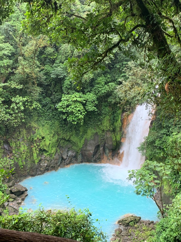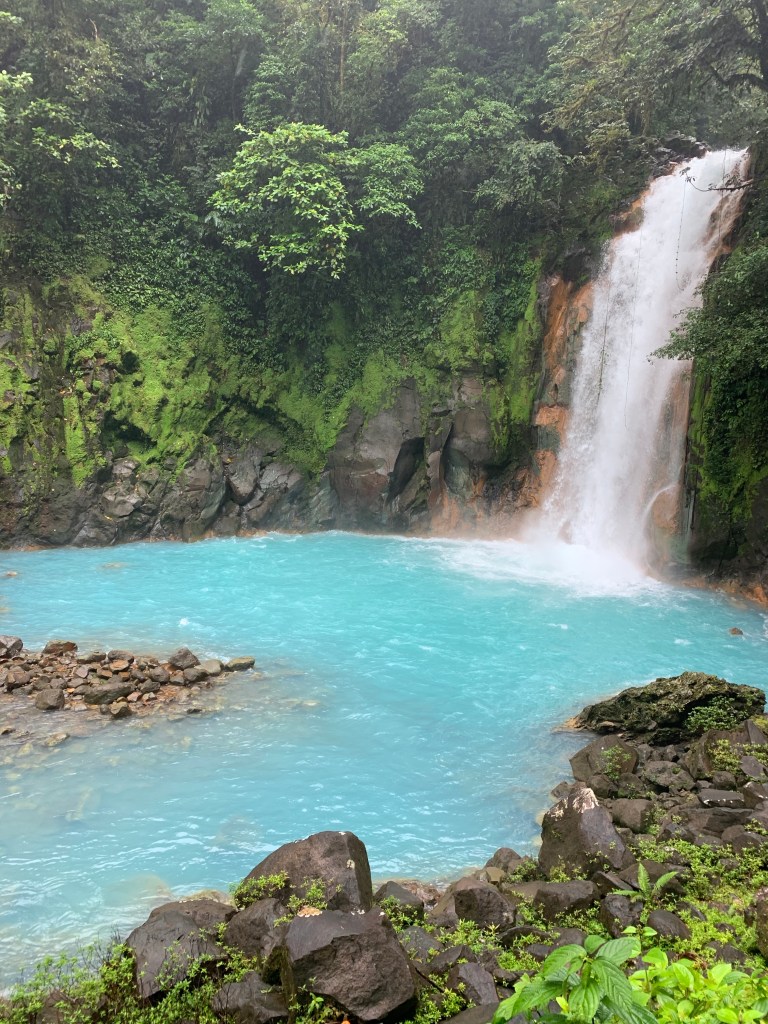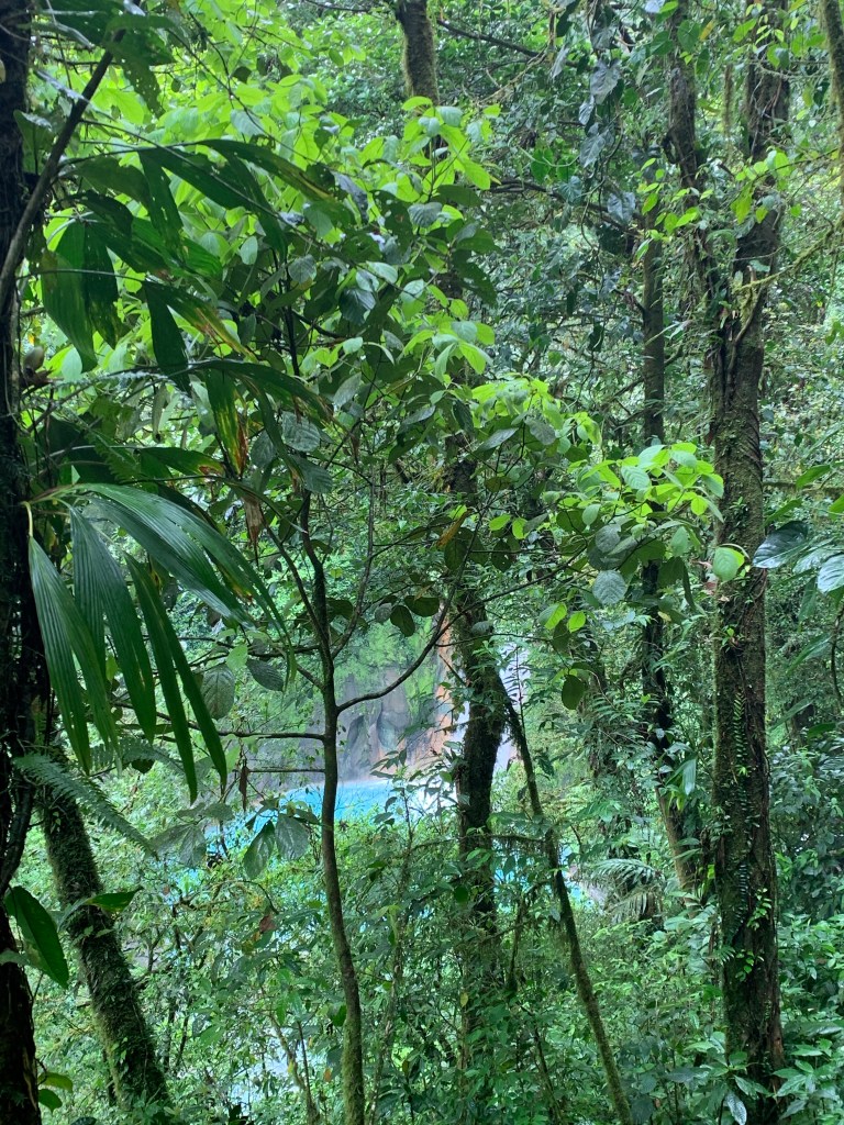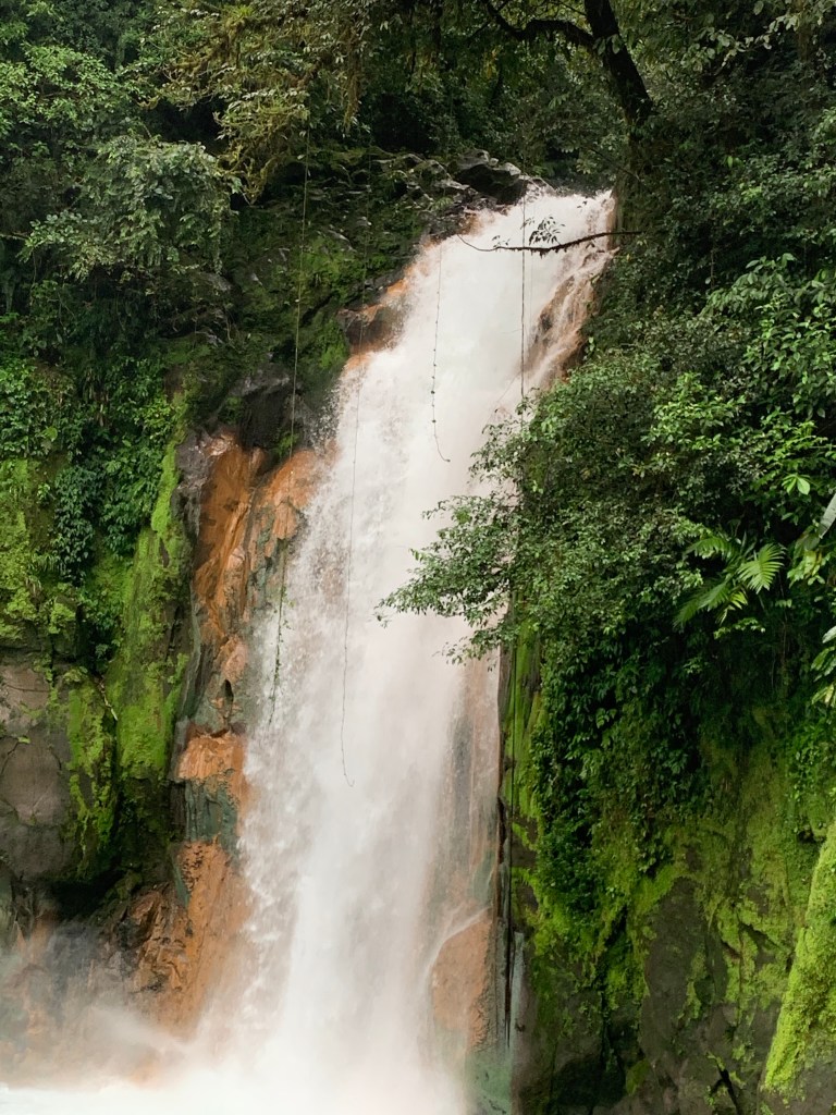 Rio Celeste waterfall – Rio celeste means heavenly river, the name reflecting the color of the rivers water. We went here taking part of the walk through Tenorio National park guided by Alejandro.We saw sloths and snakes and primary and secondary rain forest. Although the weathergods weren’t quite on our side this day – the rain pouring down for most the hike – we learnt so much about all the wild animals, the vegetation and all the natural medicines/household use you can make of the different plants found in the jungle. (I found this particular information quite amusing, being in the medical field, in western medicine; According to him, in CR there is a very high number of children with anemia, for some unknown reason. Cocolmeca is a plant, and there is a nature medicine that can be made from the cocolmeca plants leaves and root boiled together with 4 l of water, boils down to 1 liter of bloodcoloured liquid, and drinking a little glass of this every day for 3 months according to him corrects the anemia). Alejandro was like an encyclopedia on two legs, and knows the jungle with animals, serpents and plant like his back pockets. Several times on the walk the passing guides titulated him “Maestro”.
