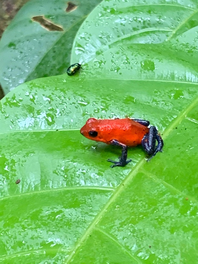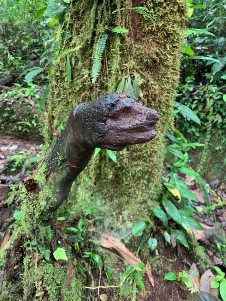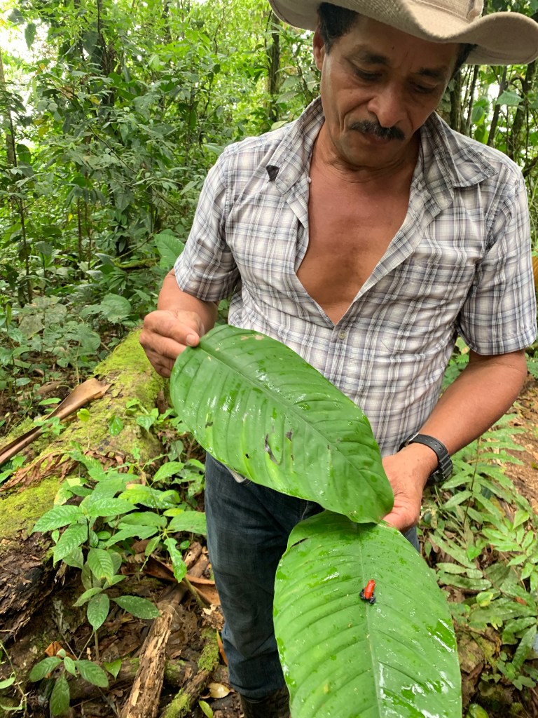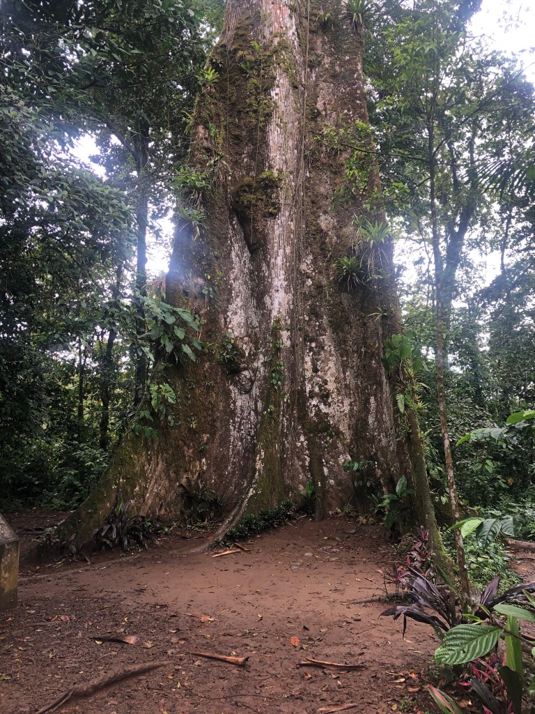 On the way back, we swung by quite the celebre tree: an 8-900 year old tree with an immense diameter, and poisonous red/black and blue frogs in the vicinity.