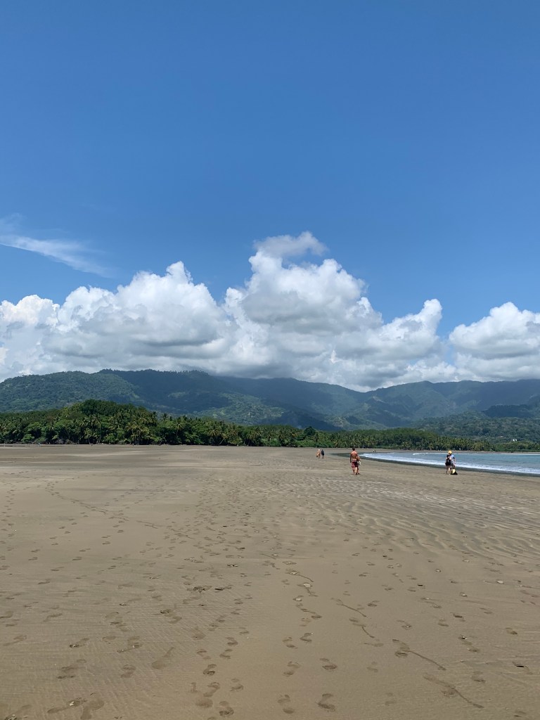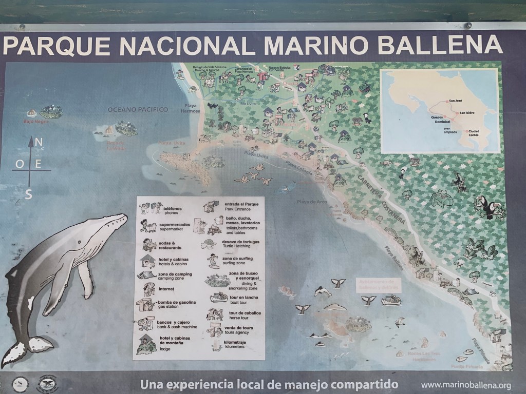 Uvita had a lot of things to offer, amongst these, Marino Ballena nathional park was a must: located on the south pacific coast at the footsteps of the community’s of Uvita – Bahia Ballena, in the province of Puntarenas, Osa, Costa Rica. The park pertains to the Area of Conservation for the Osa region and was officially declared as a Marine National Park in 1989. The park is named after the Humpback whales that migrate there from mid July and October, and again in December through March from feeding and mating grounds in the north and south hemispheres to the warm tropical waters of Costa Rica; Isla Ballena (whale island) and Punta Uvita (tip of Uvita). The sandy beach and rocks of the national park forms an actual whales tail on low tide, which we were so fortunate to have in mid-view from our eco-balcony. Stunning, as its views make you feel so small. Unfortunately destiny didn’t mean for us to take in the view of the playful, beautiful, majestic whales; not knowing what the future will bring probably is a good thing, because then you are able to enjoy every moment to the fullest until destiny has it its own way…