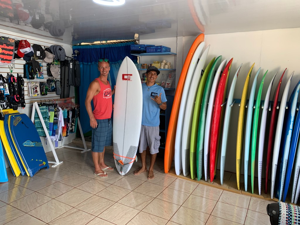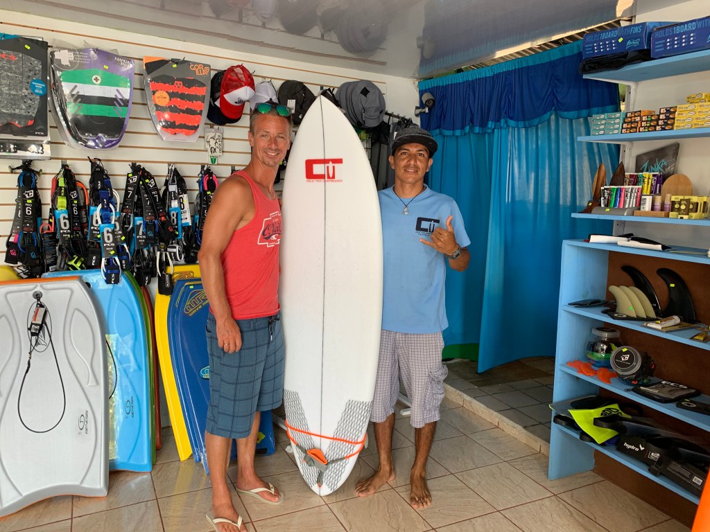 6 days in to our stay at Morpheo in Uvita, the Norwegian government called all Norwegian citizens home. Right before this though, Erik got a new surf-friend, that happened to have his own surfboard shop making his own surfboards – Esneyder Valencia, “Colo Tico Surfboards”. So the last day of our Uvita-stay, he swapped in his old bord and bought a new, custom made, pure CR board which will be packed down with TLC and brought to Norway. He got in a couple of good rides out of it before packing it down, though. And we are most definitely coming back!