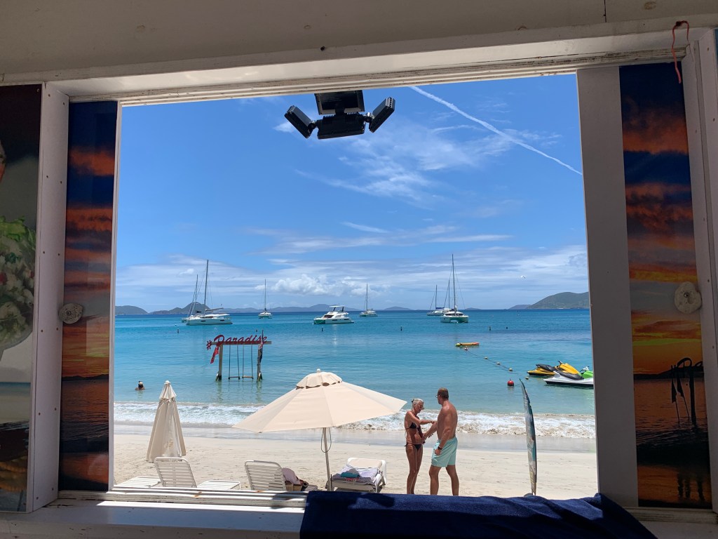 Liftoff again – and for the first time we reefed the genoa – sound of silence and 4 knt headwinds, amazing. Heading for Cooper Island and getting really good at spotting available moorings- got the best one this time too, and this time around it wasnt already taken, lucky for us! Well anchored up in Manchineel Bay more fun awaits!