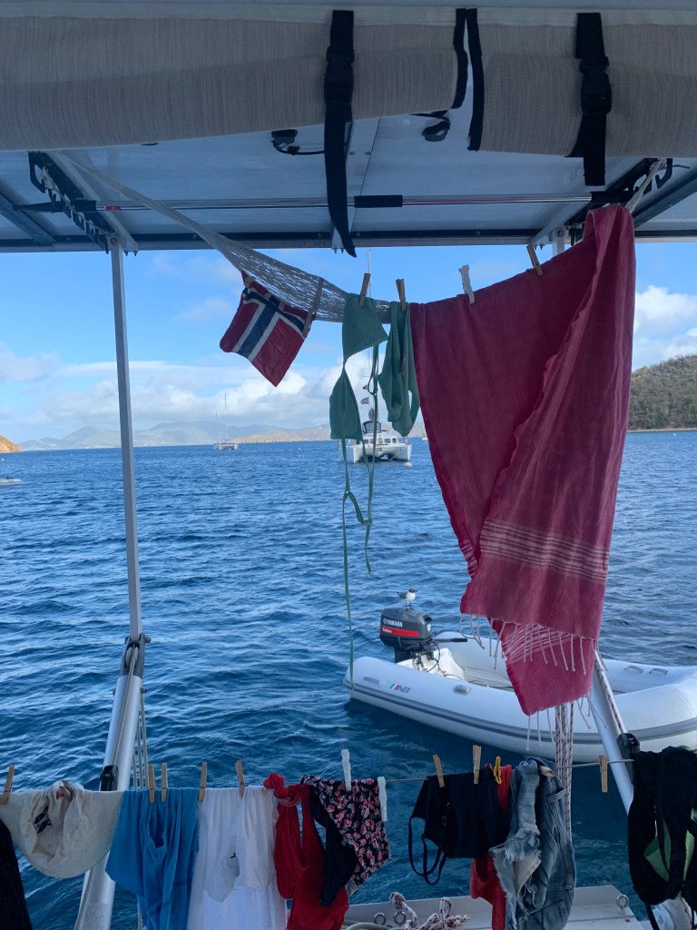 It being the day before our constitution day- 17th of May- we got all dressed up in our best caribbean formal wear after a long swim and bathsession off the back of the boat with shampoo and the works, we enjoyed a 3 course meal in the fancy Pirate bights beach bar and grill. Brightly coloured caribbean drinks, conch fritters, baby back ribs and lightly seared tuna. Happy 17th of May one day early🇳🇴.
