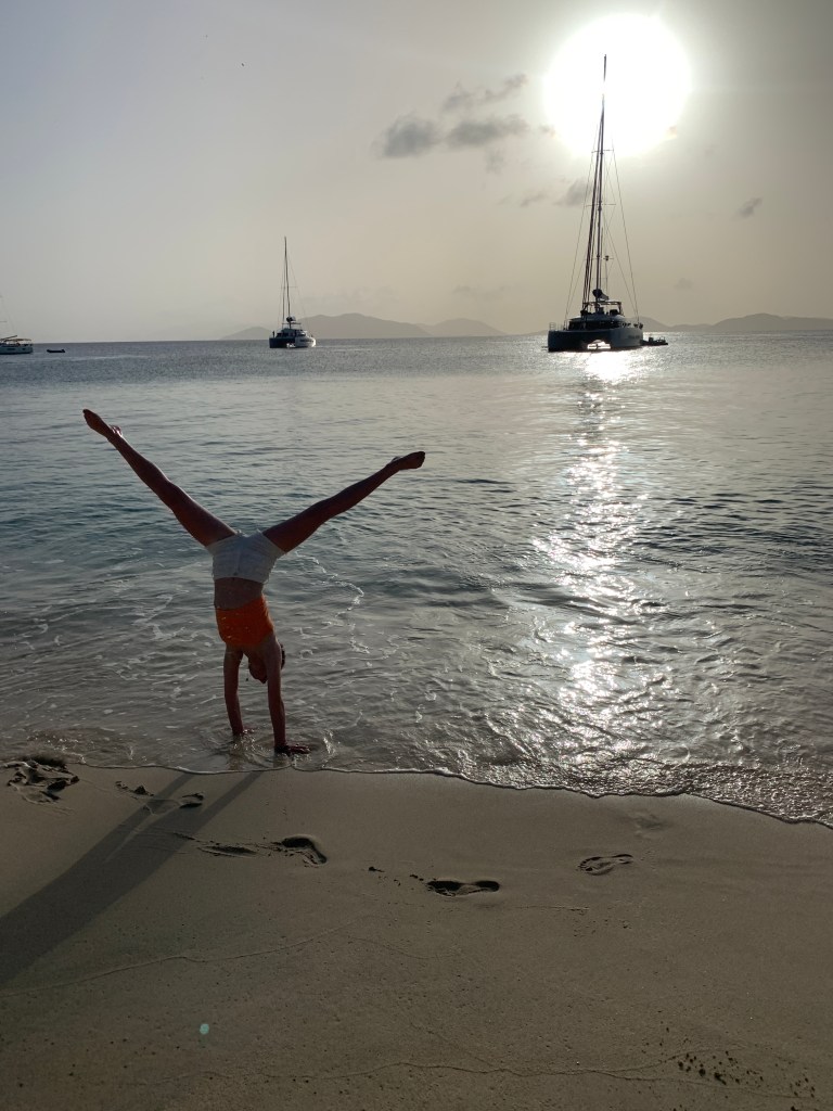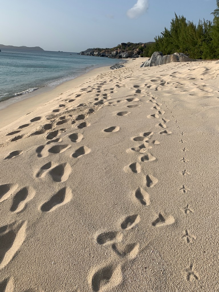 Its not allowed to stay over night at the Nat. Park moorings at the Baths, so we made our way back up towards Spanish town harbour. On the way up we spotted the most amazing white Sandy white beach (Valley trunk Bay)and decided to try to set anchor for the first time on the trip. We needed a couple of tries, but the second time it went well and the anchor stuck well to the bottom. Though the winds shift fast here and are strong, and so are the currents, so Capt Eriksen stayed aboard to see if the anchor stuck in place and the rest of the «Double Trouble» crew got in the dinghy and went to shore, the feeling of «Pirates of the Caribbean»-style entrance to this remote, dreamy white beach for a little stroll and a game of football before finding another mooring for the night.