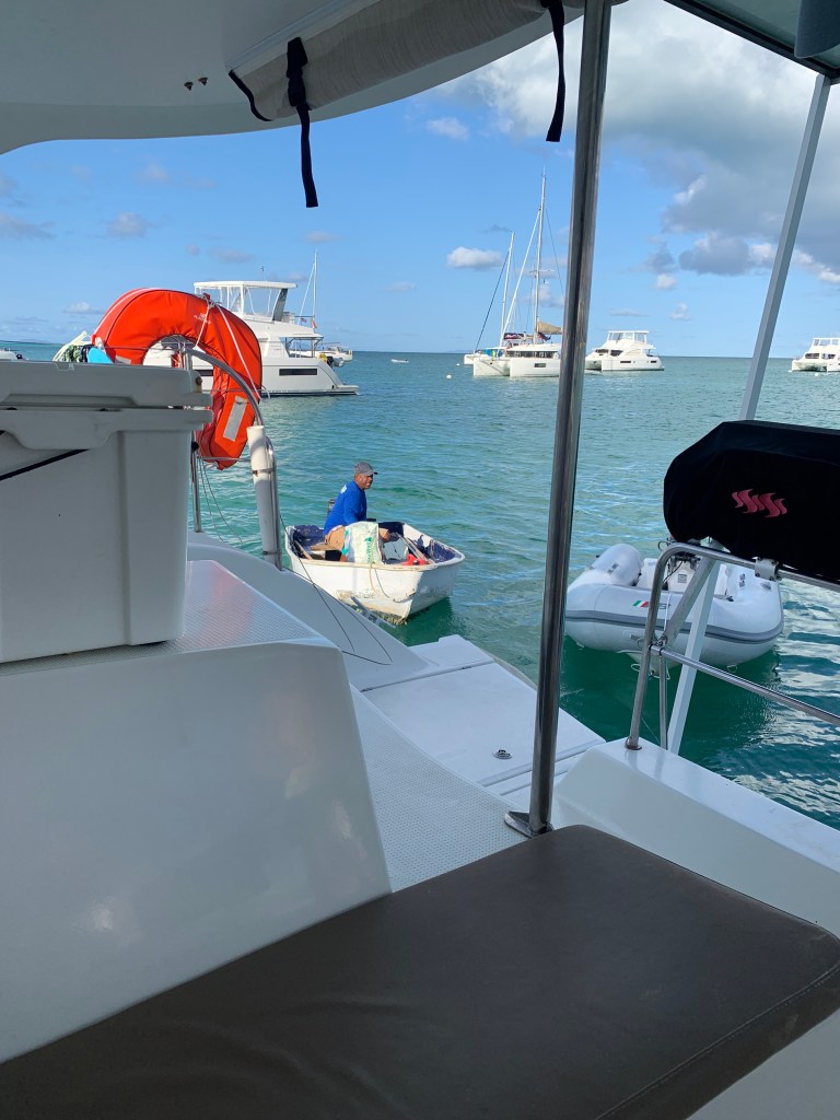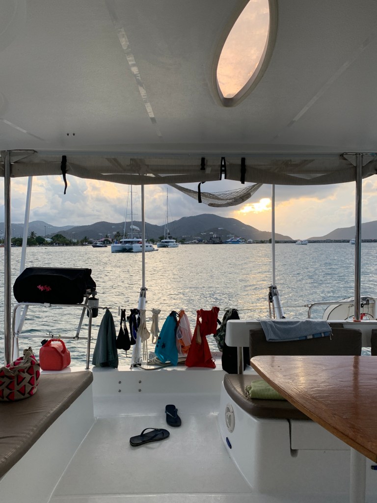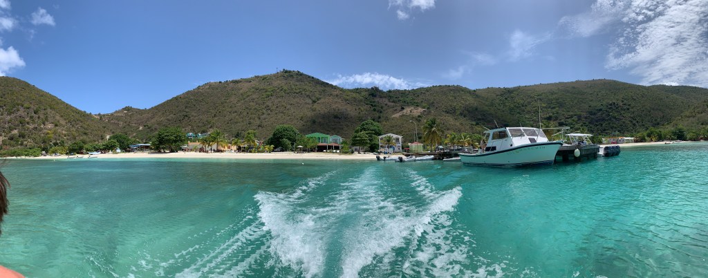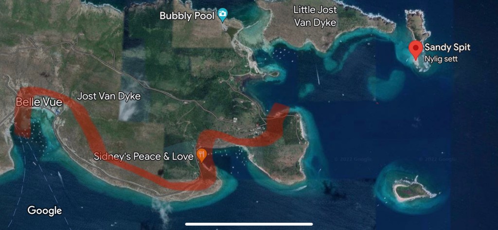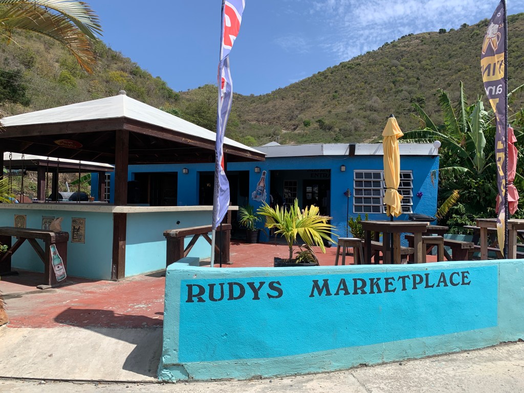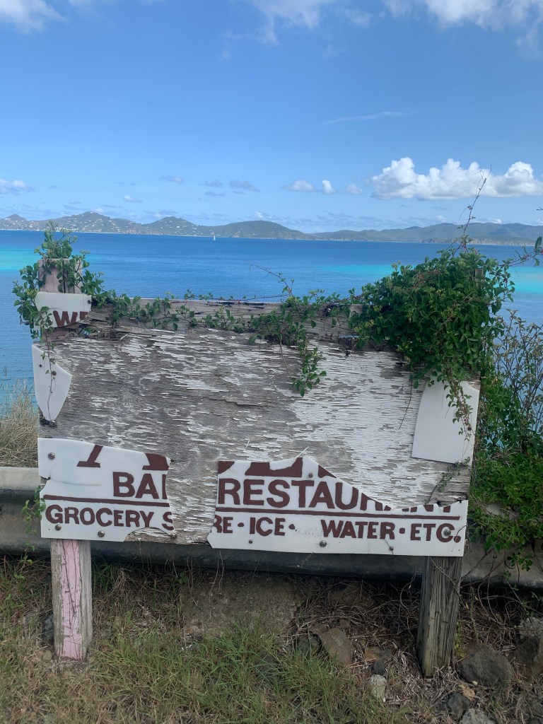 Awakening to a new sunrise with clear skies, bookreading and coffee in a hammock on deck before a short boatride to Great harbor for fuelling at eriks newfound gasstation lady, waterfilling and grocery shopping at Rubys marketplace, here we could se Irmas damages up close with the villages church roof completely gone and window covers hanging crookedly. Christines bakery was expected to be a real treat, except they only accepted cash which we were low on so no fresh baked goods for us- not this time…At the main Foxys we hung our Norwegian flag with the boats name and all our names written on it- should any of our friends come by there some time, they can actually pick it up and bring it back for us, otherwise it’ll stay there till the end of time!