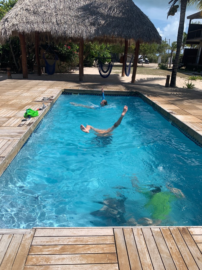 Last day on Anegada we spent the whole day at ABC (Anegada beach Club)with the children a good 5 hr continous poolswim, ginger beer on the rocks, carib with lime,ABCs famous BLLT(bacon lobster lettuce tomato) sandwich. ( this being after the morning SUP in the mangroves).