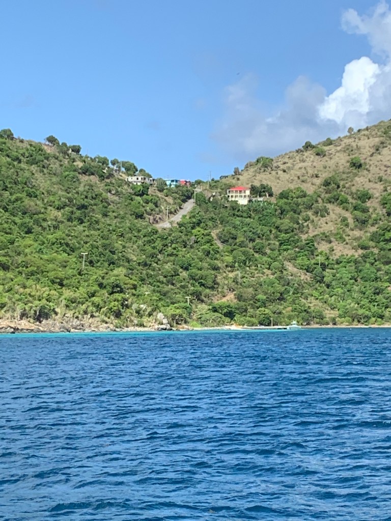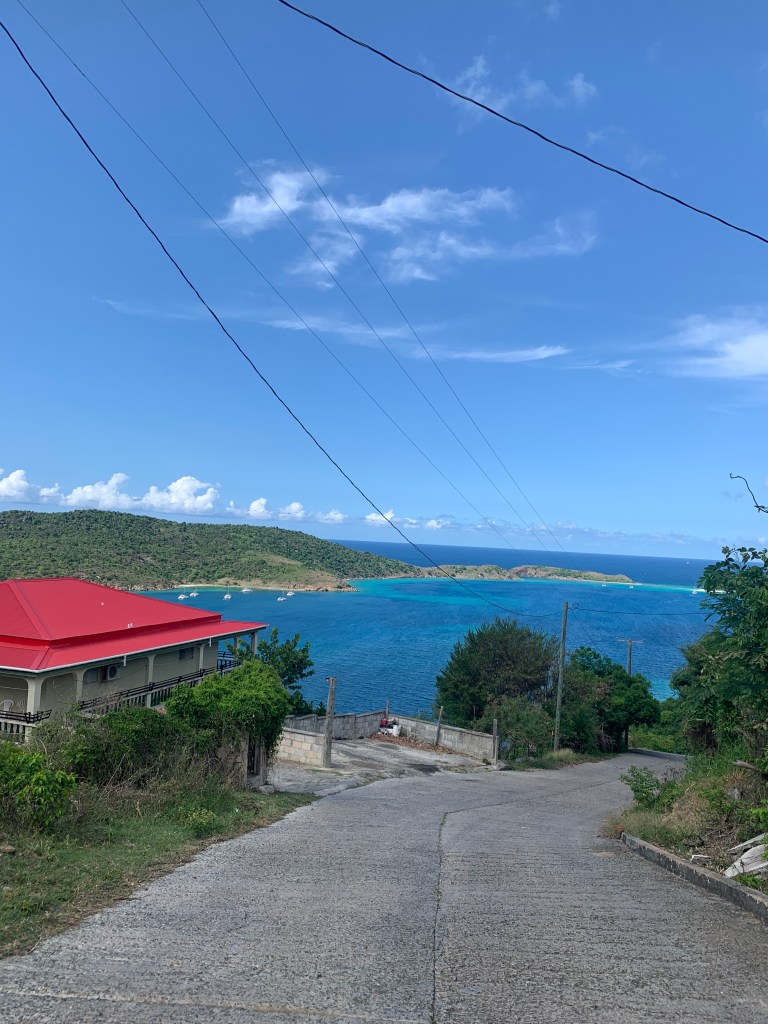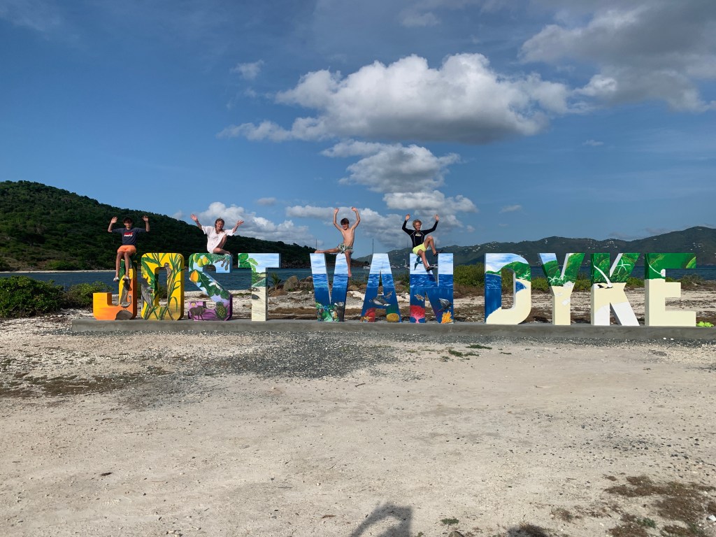 On the next leg we were headed to Diamond Cay located between little Jost van Dyke and Jost van dyke, a 4-5 hr sail. Most of our crew experienced a little seasickness, all happy as we finally reached Diamond Cay and hooked up to a mooring. Sailing into the bay you pass Green bay and the Sandy Spit on Starboard side, a tiny all-sand Island with a couple of palms, and you need to swim ashore to Get there. We knew we were running low on dinghy fuel, but turned out it was critically low, so 3 of us went for a hike the Road over the hills to the next bay- Little harbour- up and down immensely steep roads(where the cars were actually going backwards up the hills in order to Get up at all!), just to find that the fuelstation there was no longer in use….